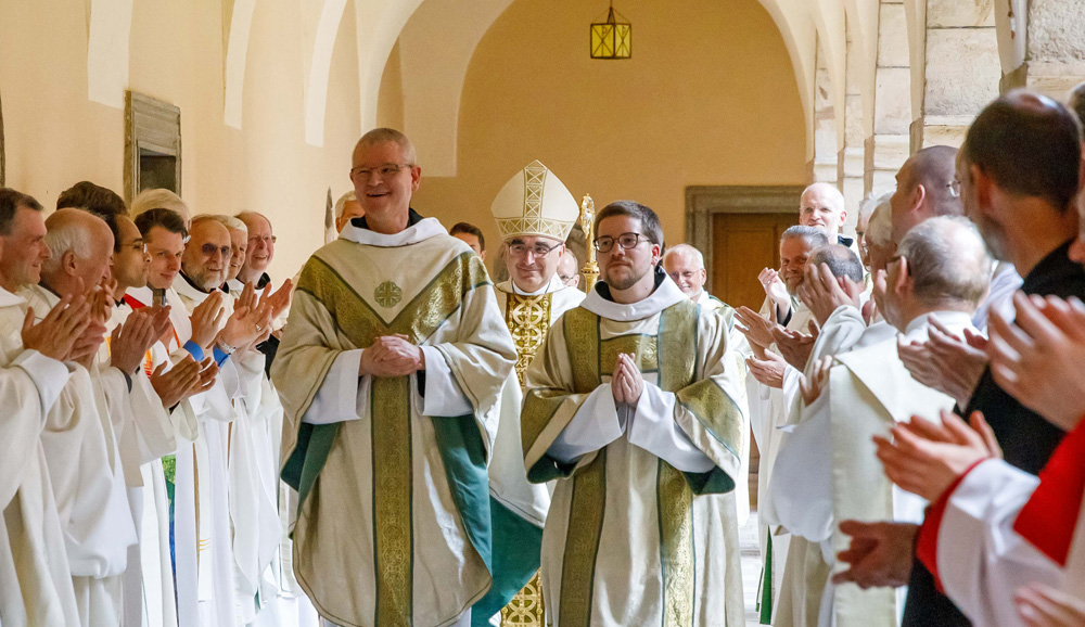 Unser Diözesanbischof Dr. Wilhelm Krautwaschl hat unter Handauflegung und Gebet am 10. Juli Br. Benedikt Legat OSB zum Diakon und P. Seraphim Fragner OSB zum Priester geweiht. Es war der Gedenktag des Seligen Engelbert Kolland, der als Jugendlicher kurze Zeit in unserer Gegend als Holzfäller gearbeitet hat und dessen Eltern in Rachau begraben sind.