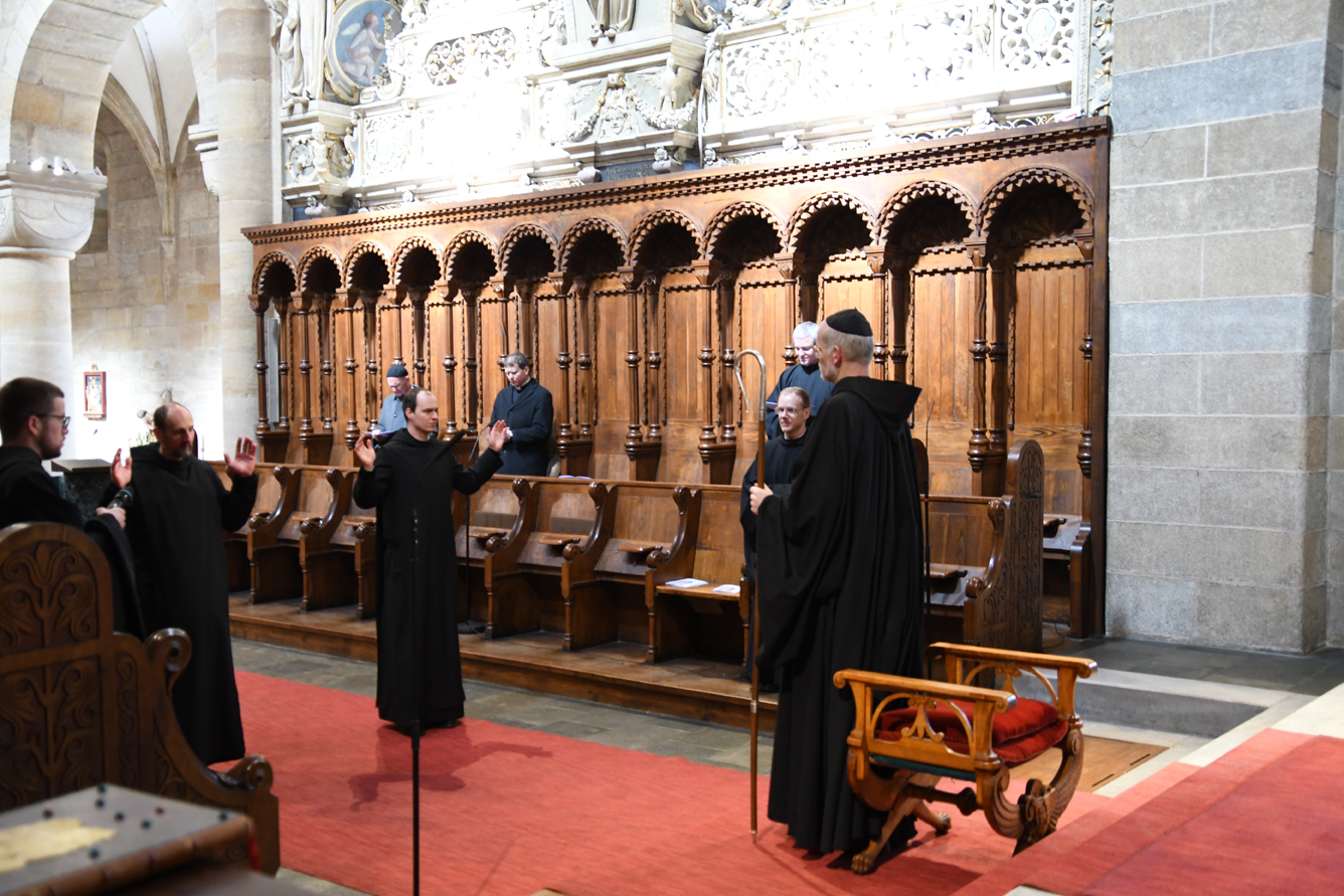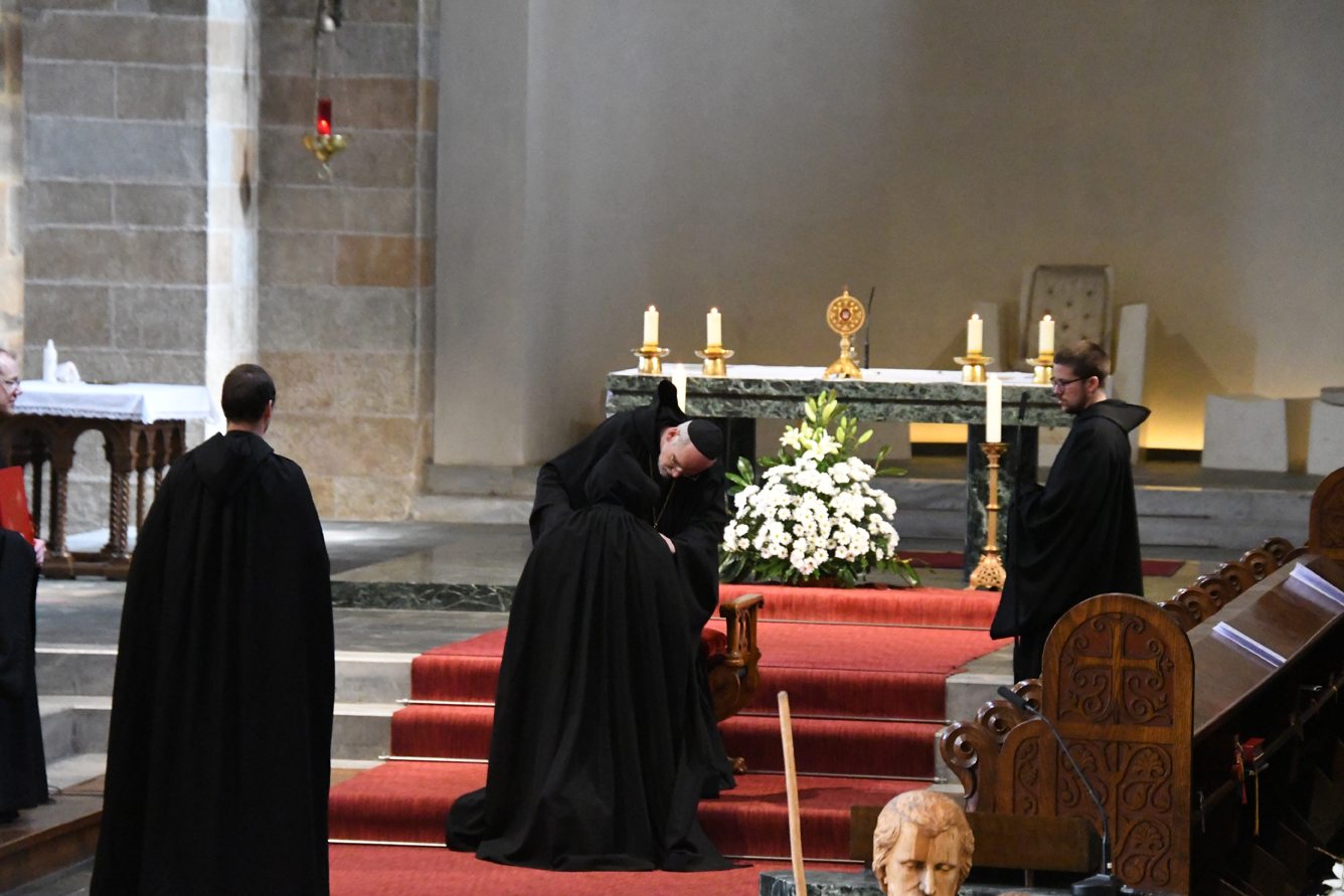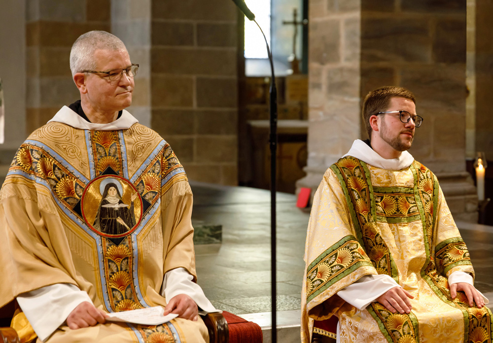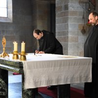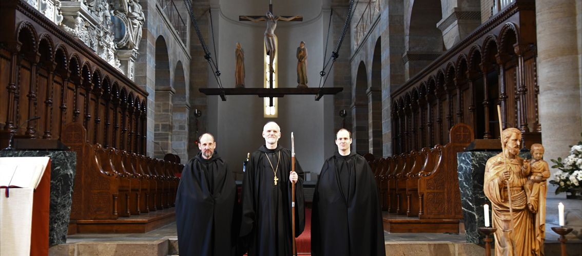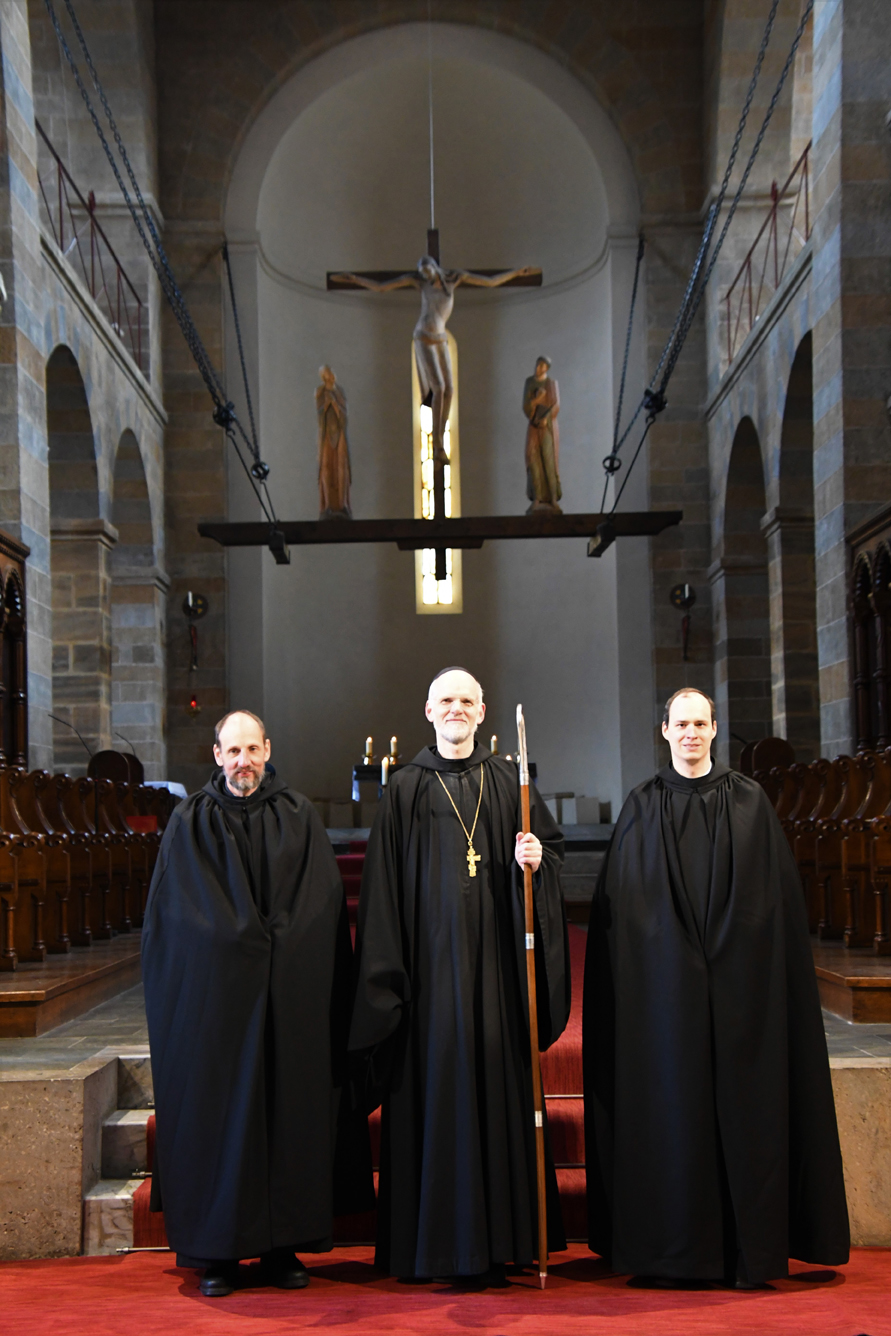 Passend für das von Papst Franziskus ausgerufene Jahr des Hl. Josef, legten unsere beiden Novizen am Hochfest des Heiligen ihre zeitliche Profess ab. Abt Johannes erinnerte Br. Augustinus und Br. Konrad an das Vorbild des Hl. Josef für unser Leben. Darüber hinaus ermutigte er die Neuprofessen als Mönche, gemäß dem Ideal des hl. Benedikt, in Gebet, Arbeit und geistlicher Lesung zu leben. Zur Feier der zeitlichen Profess waren auch die Familien der beiden Brüder gekommen und feierten gemeinsam mit dem Konvent. Unsere Gemeinschaft freut sich sehr über diesen Schritt und wünscht den beiden Mönchen Gottes Segen in den drei Jahren der weiteren Gottsuche.