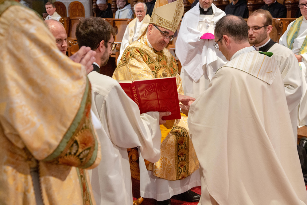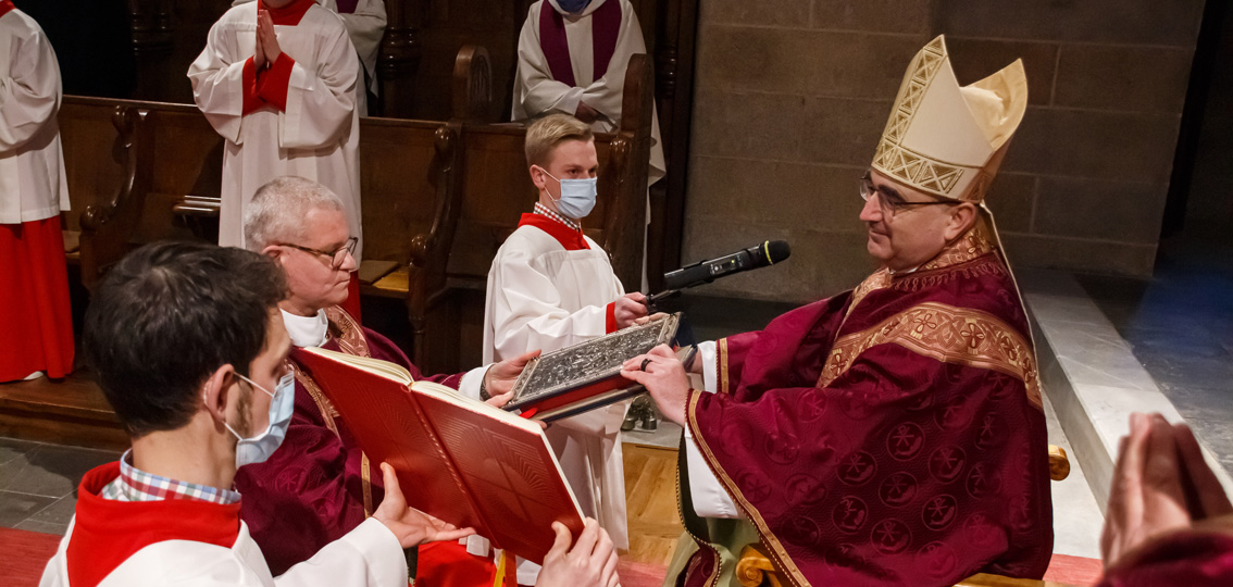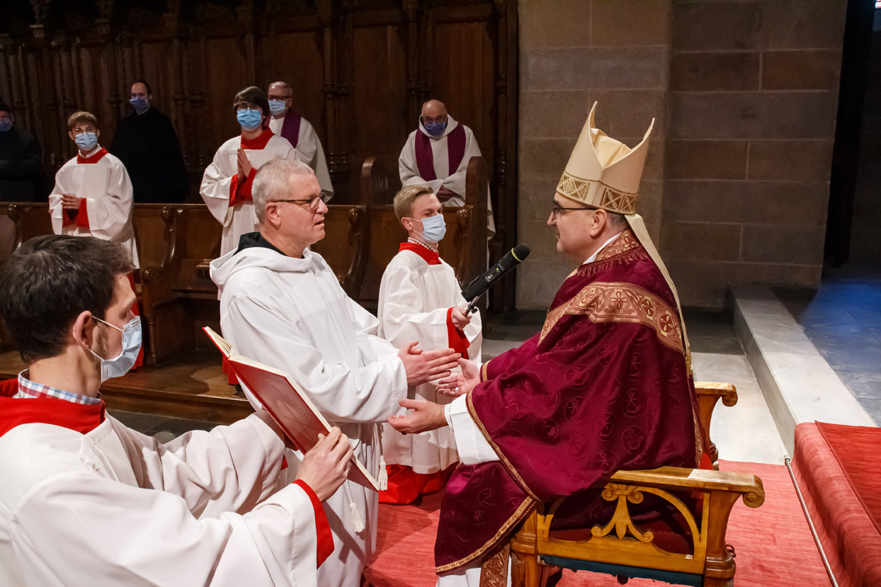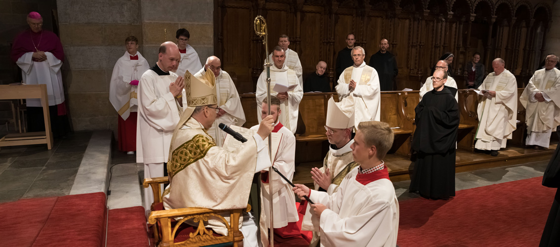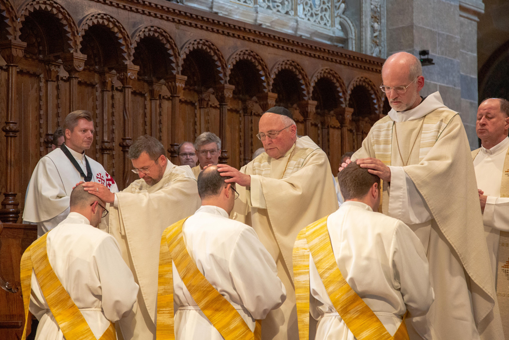 „Ora, labora et lege (Bete, arbeite und lies) - als Diakon“ – unter dieses Leitwort stellte unser Diözesanbischof Wilhelm Krautwaschl am 4. Adventsonntag seine Predigt bei der Diakonweihe von Br. Seraphim Fragner OSB in der Basilika Seckau. Der Diakon, so sagte der Bischof, soll ein Mann sein, „der sich ganz Gott öffnet“. Dies zeigt sich nicht nur durch die bleibende Wachsamkeit im täglichen Gebet, sondern muß auch Frucht bringen in der Arbeit als „Dienst am Leben der Welt und der Menschen in ihr“. Nach dem Vorbild des Hl. Benedikt soll dieser Dienst immer wieder genährt werden durch „die Anstrengung des Geistes“ im Lesen der Heiligen Schrift als Anleitung zu einem „aufmerksamen Umgang miteinander und mit unserer Welt.“ (Die vollständige Predigt ist hier nachzulesen).