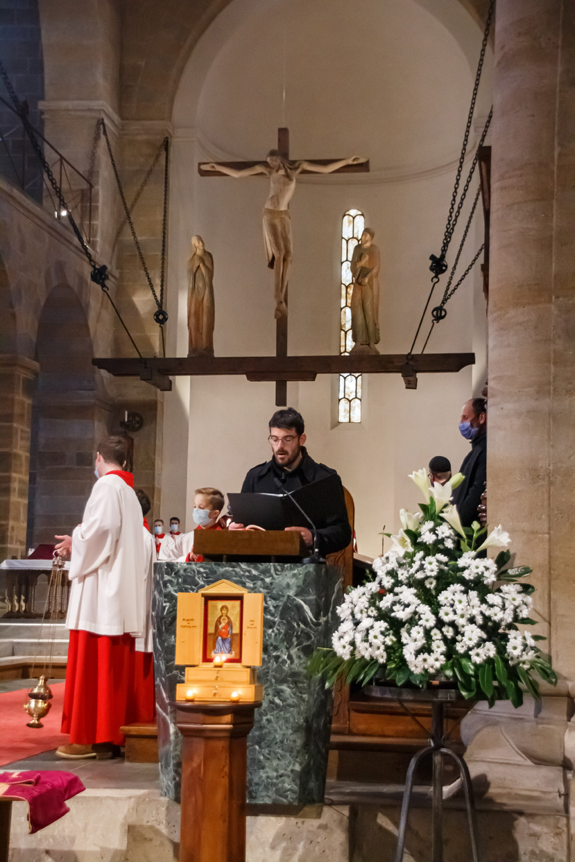 Der stellvertretende Vorsitzende des Pfarrgemeinderates Lukas Grössing dankte Br. Seraphim am Schluss der Feier herzlich für seinen Einsatz am Aufbau einer lebendigen Pfarre, vor allem unter den Jugendlichen und jungen Familien und versprach ihm das begleitende Gebet der Pfarrbewohner auf seinem Weg als Diakon zur Priesterweihe im Sommer nächsten Jahres.