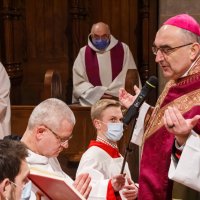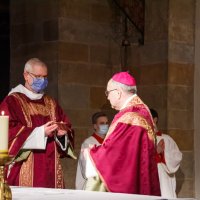 Am 11. Juli, dem Hochfest des heiligen Benedikt, hat Diözesanbischof Dr. Wilhelm Krautwaschl Abt Johannes die Abtsbenediktion erteilt. Dabei überreichte Bischof Wilhelm dem 8. Abt von Seckau Benediktsregel, Ring, Mitra und Stab. Aufgrund der geltenden Schutzmaßnahmen konnte nur eine begrenzte Anzahl von geladenen Festgästen in der Basilika an der Feier teilnehmen. Aus diesem Grund wurden die Abstbenediktion und das 1. Pontifikalamt, das Abt Johannes am "Benediktssonntag" mit der Pfarre feierte, auf unserem You-Tube-Kanal live übertragen. Bischof Wilhelm wies in seiner Predigt darauf hin, dass Abt Johannes erwählt wurde, einem "Vater" ähnlich die Gemeinschaft der Mönche auf dem Weg der Gottsuche zu halten und ermutigte ihn dabei am Kreuz unseres Herrn und Meisters Halt zu finden. Die vollständige Predigt ist hier nachzulesen. Am Schluss der Feier richteten der Direktor des Abteigymnasiums Mag. Wilhelm Pichler, Bürgermeister Dr. Marin Rath und Landeshauptmann Hermann Schützenhöfer herzliche Grußworte an den neugeweihten Abt. Nach der Abstbenediktion hatten alle Mitfeiernden die Gelegenheit Abt Johannes bei der Agape persönlich zu gratulieren.