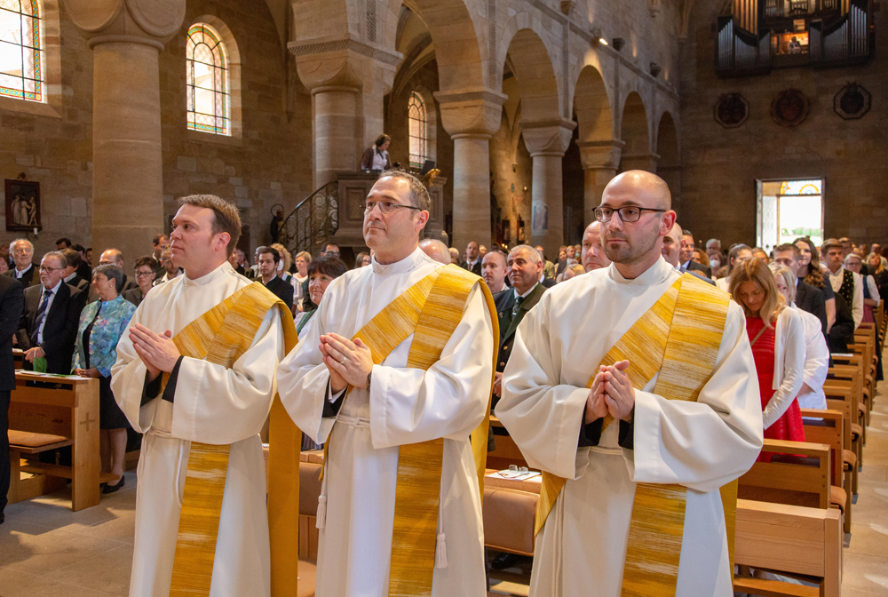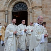 Am 24. Sonntag im Jahreskreis weihte Diözesanbischof Dr. Wilhelm Krautwaschl drei Diakone durch Handauflegung und Gebet zu Priestern. Aufgrund der laufenden Renovierung des Grazer Domes wurden Herr Mag. Elias Kraxner CRSA vom Chorherrenstift Vorau sowie Ing. Mag. Markus Schöck und Mag. Dominik Johannes Wagner in unserer Basilika geweiht. In der Predigt entfaltete Bischof Wilhelm für die Geweihten die erste Frage des Weiheritus: "Seid ihr bereit, das Priesteramt als zuverlässige Mitarbeiter des Bischofs auszuüben und so unter der Führung des Heiligen Geistes die Gemeinde des Herrn umsichtig zu leiten?". Viele Priester, Ordensleute, Familie, Freunde und Vertreter des öffentlichen Lebens waren gekommen um bei der Priesterweihe mitzufeiern und bei der anschließenden Agape zu gratulieren. Zur Aufzeichnung der Priesterweihe geht es hier.