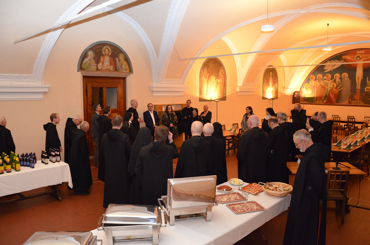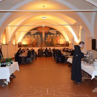 Zwischen Beratungs- und Austauschzeit gab es auch ein Führung mit P. Othmar durch die Ausstellung und die Basilika unserer Abtei. Bei einem gemeinsamen Abendessen mit dem Konvent und Vertreten von Angestellten, Pfarre und Schule, gab es die Möglichkeit zum Gespräch und Beisammensein.