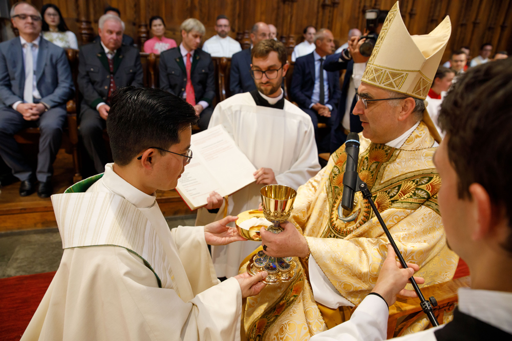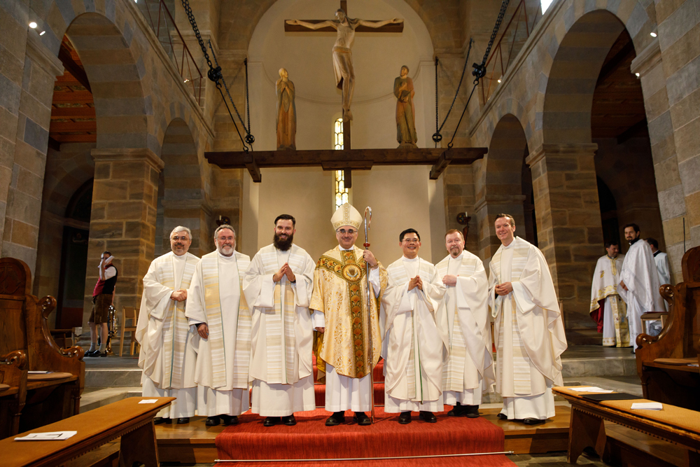 Am Sonntag den 23. Juni 2019 weihte unser Diözesanbischof Dr. Wilhelm Krautwaschl in unserer Basilika Ioan Liviu Bîlc und Anton Luu Thai Hong zu Priestern. Es war für uns eine große Freude und Ehre aufgrund der laufenden Domrenovierung in Graz Gastgeber für die Priesterweihe sein zu dürfen. Viele Gläubige und etwa siebzig Priester waren gekommen um gemeinsam mit Bischof Wilhelm die Weihe der jungen Männer zu feiern. Musikalisch wurde die Feier gemeinsam von Domchor, Kirchenchor Seckau und Bläsern der Musikkapelle Seckau mitgestaltet.